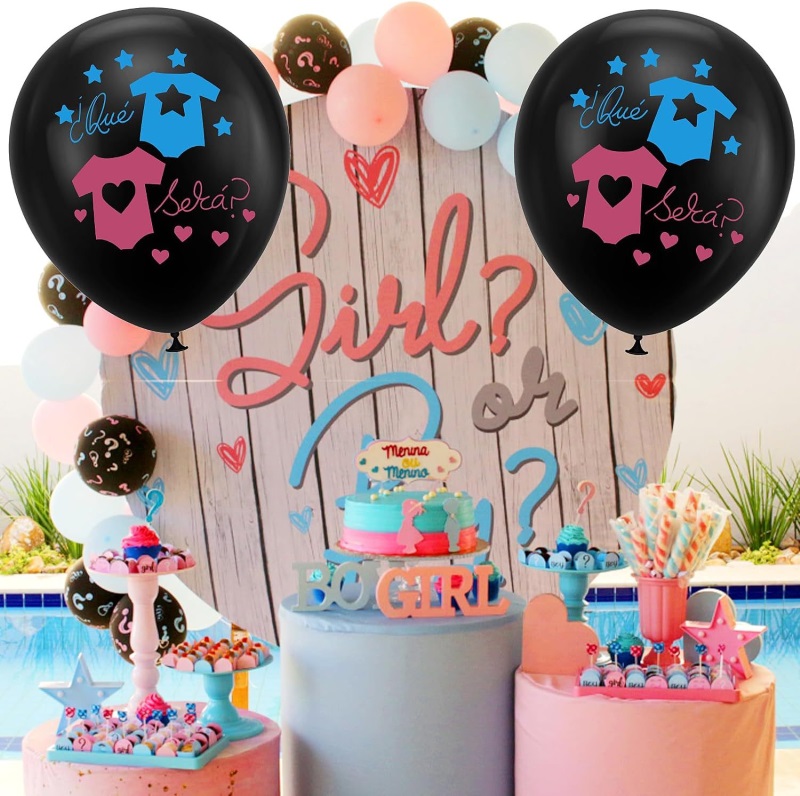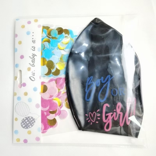 Nam36inch genera revelare BalloonIn Stock, matte est color niger et multos habet stilos imprimendi, sicut puer vel puella, puer et puella character picturae vel aliquid alii ad puerum et puellam pertinentia. Nam confetti, unus sacculus est charta rosea confetti cum claua auri coloris confetti, alter sacculus caeruleus est charta confetti cum claua aurei coloris confetti.
