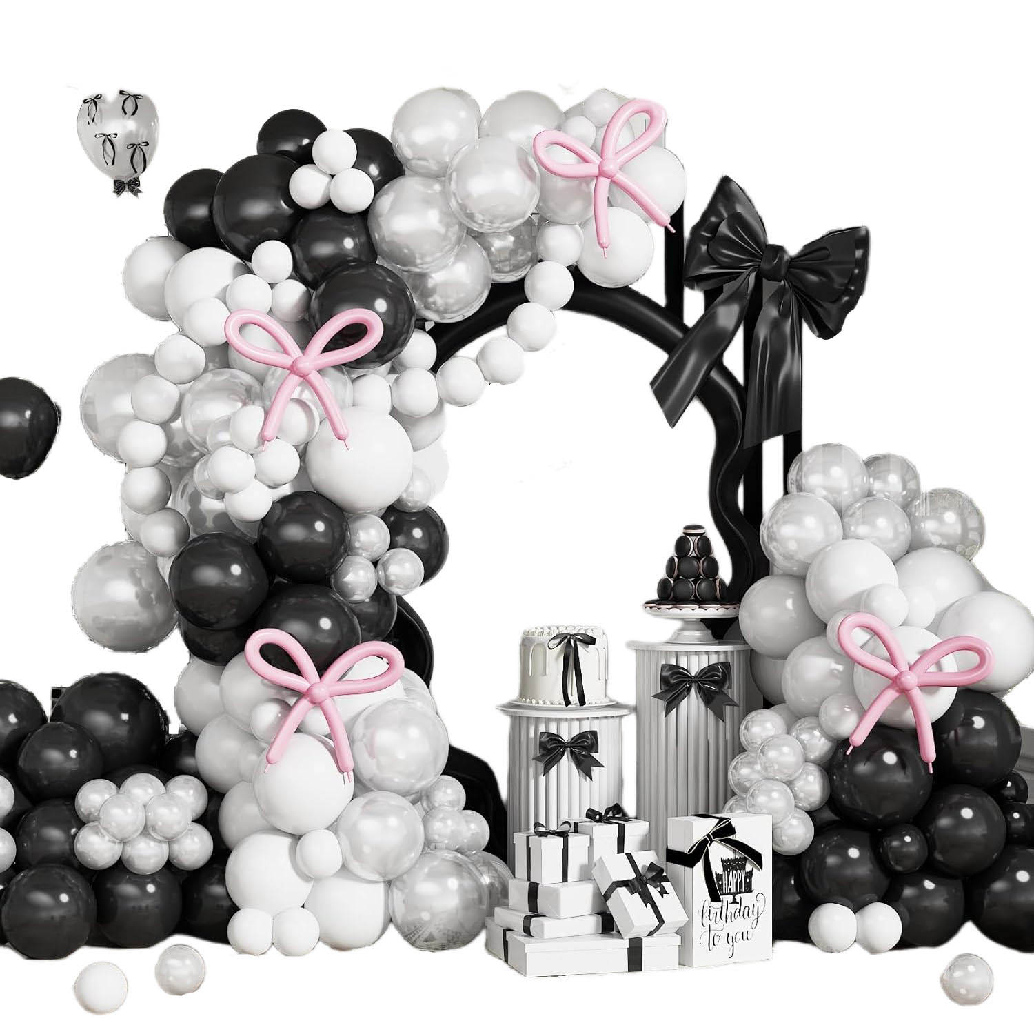 Hoc arcum Balloon Arcus Garland est currently in variis Balloon colores. Et novissima album et nigrum Balloon Arrum Garland est vulgaris arbitrium inter customers, ut suus 'maxime popularibus color. Alba et Nigrum Balloon Balloon Arcus set paria pulchre cum beatus natalis background. Et arcum accents augendae altiore natalis pars Balloon Arcus set addendo tactus est coruscent et leporem ad partium.