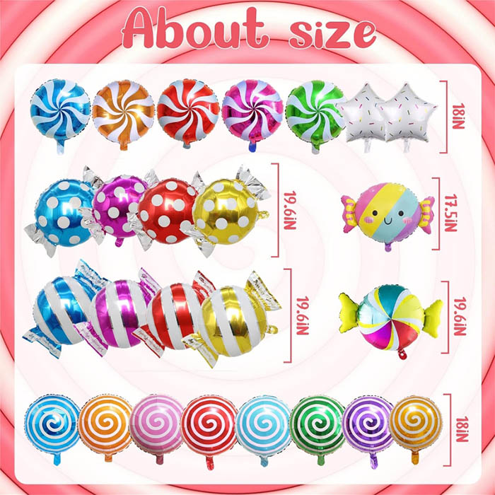 Candy Series Ffil Balloons sunt currently available in varietate colorum et genera, partum a novus Candy Lemma pars ornamentum pro adultis, pueri, pueri, puellae et omni saeculorum. Clara et LAETUS Nativitatis Candy Lemma Pilatus, cute Lollipop Lemma Party Foil Balloon sectam est cute praeter natalem tuum Lemma pars ornamentum. Candy FORUM Balloon perfecte Matches cum aliis Candy Party ORNUS, faciens pulchra donum, background et photo fulcit pro amicis, qui quasi lollipops.