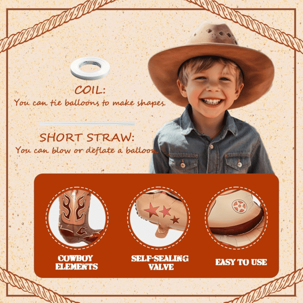 Cowboy claua pisces sertum sertumIn nucleo serti huius balloon statuto est equus claui aves in aere lapsae. Eas cum glutine et vitta figere potes ad hunc effectum creare. Praeterea adicimus bubulcus pileos globulos balloons et bubulcus ocreas ffoyle balloons bonae compositionis erit. Summa copiarum copiae ex latex balloons cum stylo occidentali componitur. Balloons sunt circiter 60-80pc diversae magnitudinum, inclusae fuscae, nigrae, nigrae et albae vaccae coloratae, etc.