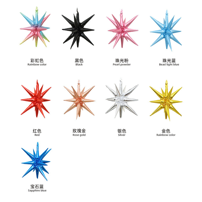 Unus-Piece exploding stella Ffil Balloons: Available in Duo Sizes: XXII pollices et XXVII pollices. XXII-inch mole minor apta cubiculis et officiis faciens perfectum natalis decor. XXVII-inch mole est magis idoneam ad maior spatia, sicut convivium Halls et shopping pretium fenestras. Etiam si suus 'pendebat princeps, exemplar potest esse evidenter videtur.