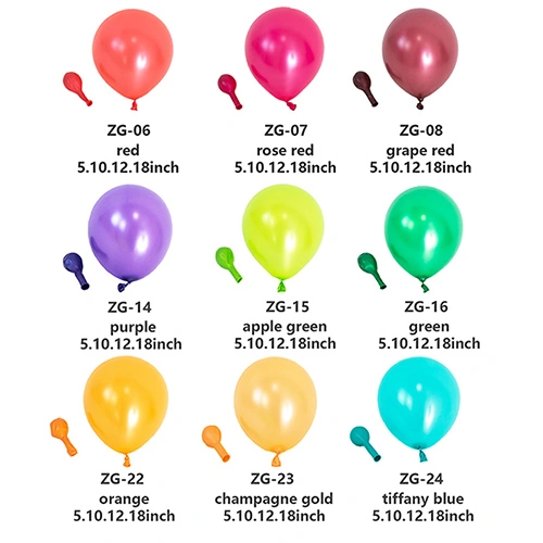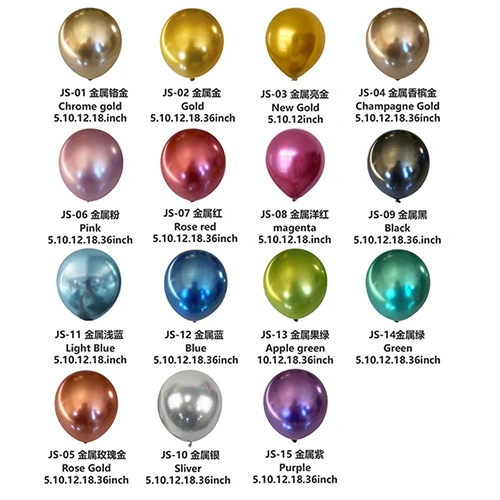 Balloons metallicus:Cum summus glosa speculi absoluti et texturas et colores captans, hi sunt maxime versatiles pisces ad usum partium ornamentorum, consuetudinum typographicorum, et plura.