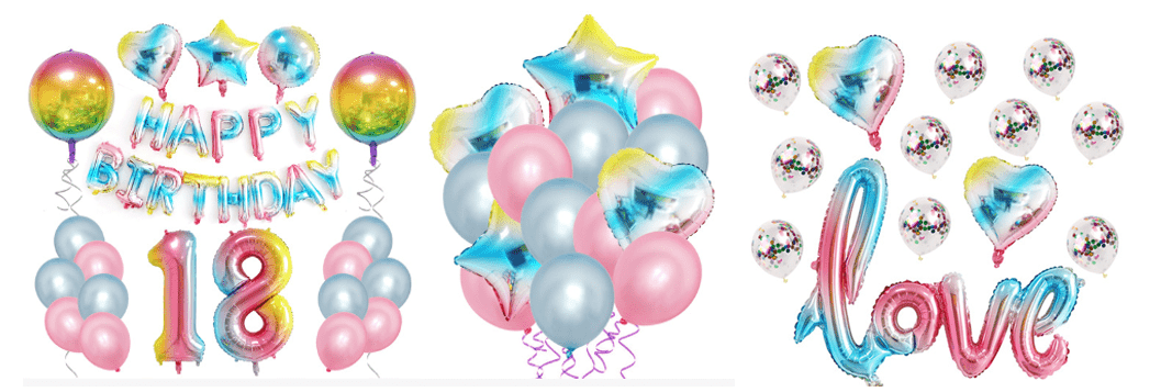 Color aspectum: Iris numerus claua balloon utens gradiente virens, color sutura, plagae arcus et alii processus, ostendens varios effectus colorum. Quaedam producta fundantur septem coloribus fundamentalibus rubro, aureo, flavo, viridi, caeruleo, indico et purpureo. Per technologiam mutationis gradatim transitus naturalis, textura perlucida efficiunt sicut iris post pluviam. Nonnulli producti colori collisione utuntur cum magna satietate, ut rosea et caerulea evolvit, flavum et viridis resonat, fortem impulsum visualem formans et partium atmosphaeram illustrans. Haec color designationes ad publicam conformationem psychologicae consociationis pulchritudinis et fortunae significatae ab iride, et etiam ad stylos cum diversis thematis partibus accommodari possunt.