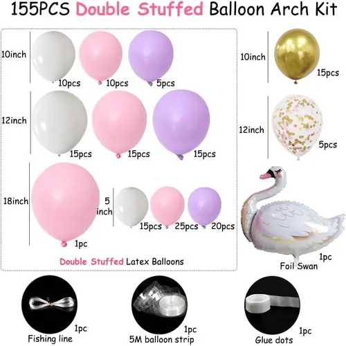 Addemus varias accessiones ad Swan Balloon arch.Including dot glutinum, fasciculum, habena et vitta. Adde quod etiam alias accessiones prout postulastis addere possumus.