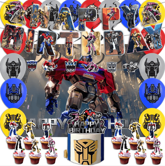 Classic iunctura: Transformers foil balloon cum color latex Balloon thema vexillum, latex tollit ut basis, ffoyle balloon ut nucleus visualis, vexillum ut thema ornamentum, apta ad partes natales, celebrationes festivitatis fundamentalis layout.