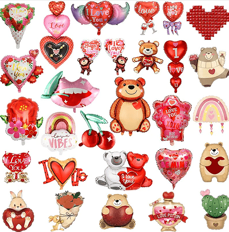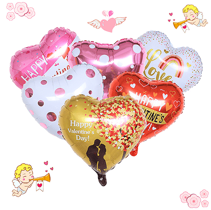 Valentine 'Dies Balloons circum Romanorum, amorem et ritualem designantur'. Core genera dividi possunt in bracteas cor informes in Valentine 'Dies bracteas, stylo Valentini dies pisces ffoyle, epistolae Valentini dies ffoyle balloons et nativusValentine 'Dies Balloon sertum occidereet sic de aliis.